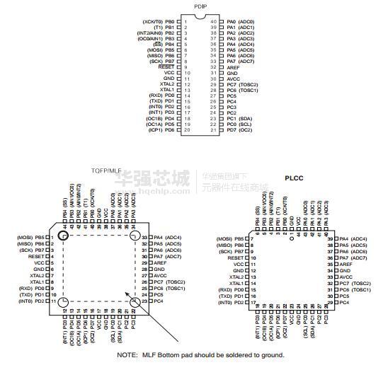 – 40 引脚 PDIP 封装 , 44 引脚 TQFP 封装 ,44 引脚 PLCC 封装与 44 引脚 MLF 封装