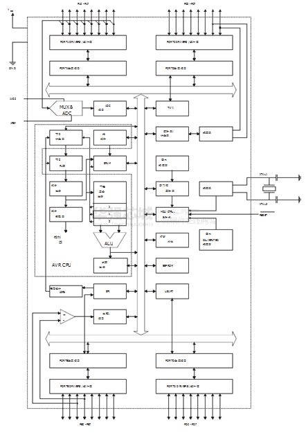 - 六个睡眠模式:空闲模式, ADC噪声抑制,省电,掉电,待机