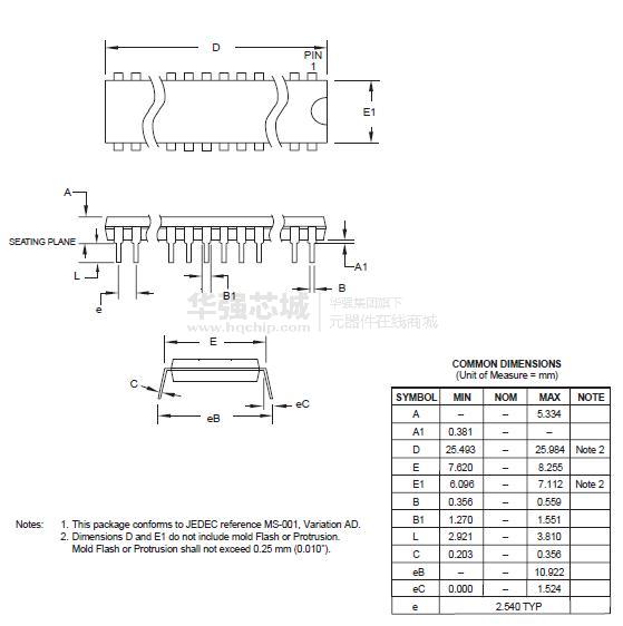 – 20引脚PDIP/SOIC: 16 个可编程I/O 线
