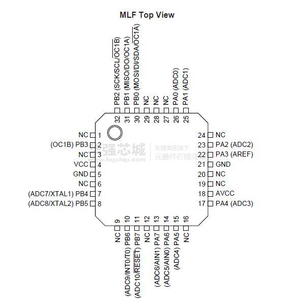 – 32引脚MLF: 16 个可编程I/O 线