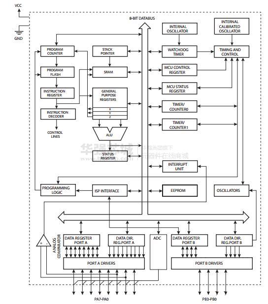 14引脚SOIC封装,PDIP和20引脚QFN/MLF封装:12个可用I/O口