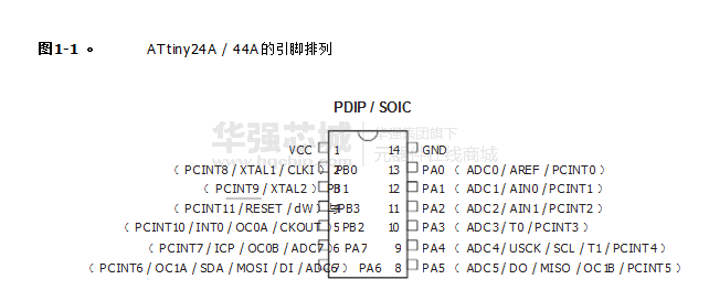 ATtiny24A / 44A是低功耗的CMOS基于AVR 8位微控制器增强型RISC架构。通过在单个时钟周期内执行强大的指令, ATtiny24A / 44A的数据吞吐率高达1 MIPS每MHz使系统设计师能够优化功耗和处理速度之间。