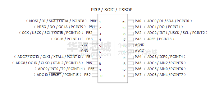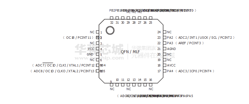 - 20引脚PDIP , 20引脚SOIC , 20引脚TSSOP和32片MLF