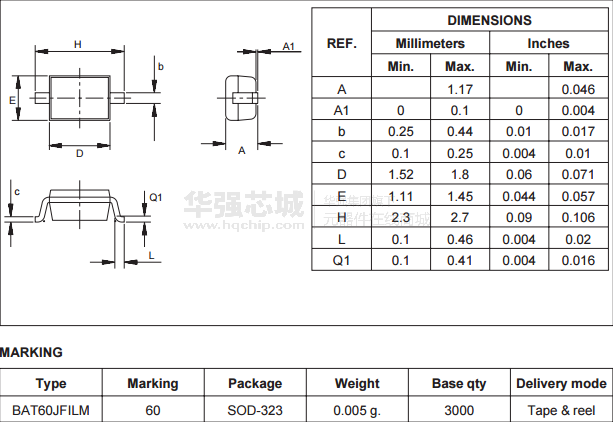 在一个小的SMD封装SOD-323封装的肖特基二极管。