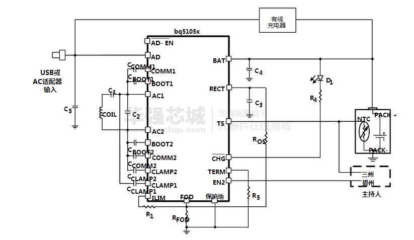 该bq5105x是一种高效率无线电源接收器,锂离子/锂聚合物电池充电控制器,便携式应用程序。该bq5105x设备提供高效的AC / DC电源转换,集成数字控制器遵守齐V1.1通信协议,需要进行有效的所有必要的控制算法所需安全锂离子和锂聚合物电池充电器。连同bq500210发射机侧控制器,所述bq5105x能够直接电池充电器解决方案提供完整的无线电力传输系统。利用近场感应功率传输,接收器线圈嵌入在便携式设备可以拾取由发射的功率发射线圈。来自接收器线圈的交流信号,然后整流和调节以直接给电池加电。全局反馈是从接收机到发射机,以稳定的电源既定转移过程。这种反馈是利用齐V1.1通信协议建立的。