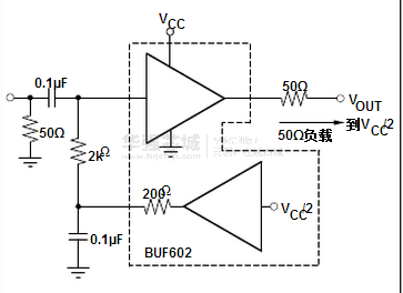 该BUF602是一个闭环缓冲器推荐了广泛的应用。其宽的带宽(为1000MHz )和高压摆率( 8000V / μs)内使非常适合用于非常高频的信号。为交流耦合应用,可选的中点引用( VREF)被提供,减少的数量需要的外部元件和必要提供电流以提供参考。