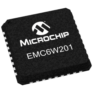 The EMC6W201 is an environmental monitoring device with automatic fan control capability and enhanced system acoustics for noise suppression. This ACPI compliant device provides hardware monitoring for up to six voltages (including its own VCC) and five external thermal sensors, measures the speed of up to five fans, and controls the speed of multiple DC fans using three Pulse Width Modulator (PWM) outputs. Note that it is possible to control more than three fans by connecting two fans to one PWM output. The EMC6W201 will be available in a 36-pin QFN package.