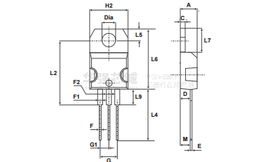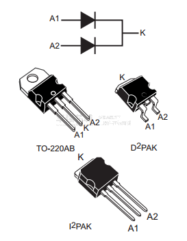 该双中心抽头场效应整流器提供稳定的漏电流在全方位的反向电压和低正向压降。