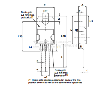 包装采用TO - 220AB,本装置适用于开关电源,或汽车上的应用