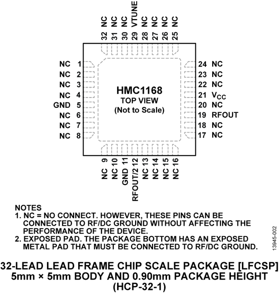 采用5 V电源电压时,输出功率为10 dBm(典型值)。 VCO采用符合RoHS标准的LFCSP封装,无需外部匹配元件。