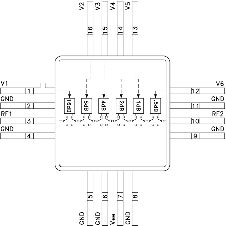 0.5dB LSB GaAs MMIC 6位数字衰减器,DC - 3 GHz