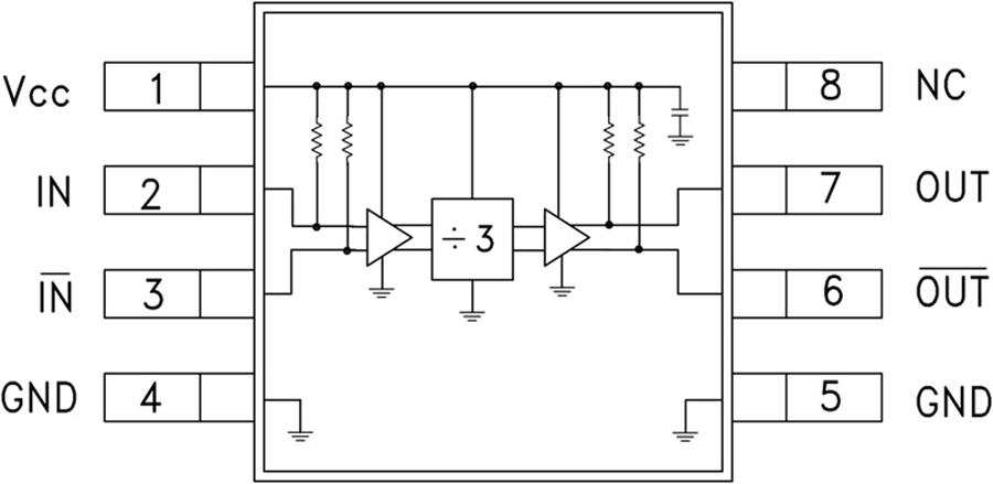 使用InGaP HBT技术,3分频,采用SMT封装,DC - 7 GHz