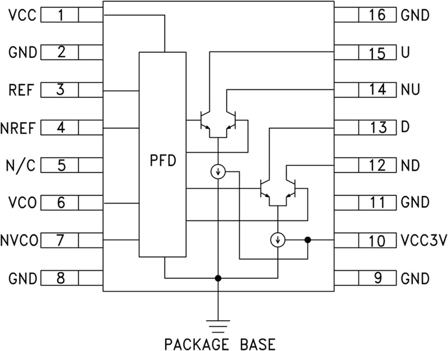 HMC439QS16G(E)是一款数字鉴相鉴频器,适合低噪声相位锁相环应用,输入频率10至1300 MHz。 它将高工作频率和超低相位噪底结合在一起,能够提供具有很宽环路带宽的合成器和低分频数,从而实现快速开关和极低相位噪声。 与差分环路放大器结合使用时,HMC439QS16G(E)可以生成输出电压,用于锁相VCO为参考振荡器。 该器件采用低成本表面贴装16引脚QSOP封装,具有裸露基极,以便改进RF性能和散热性能。