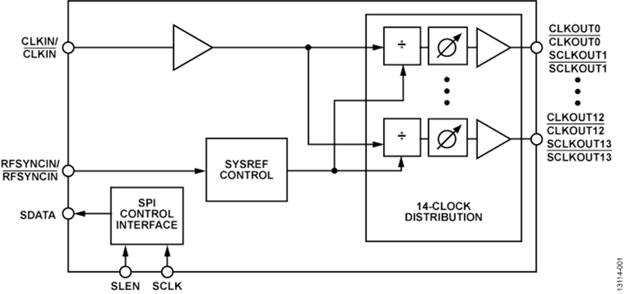 最多提供14路LVDS、LVPECL或CML型器件时钟(DCLK)