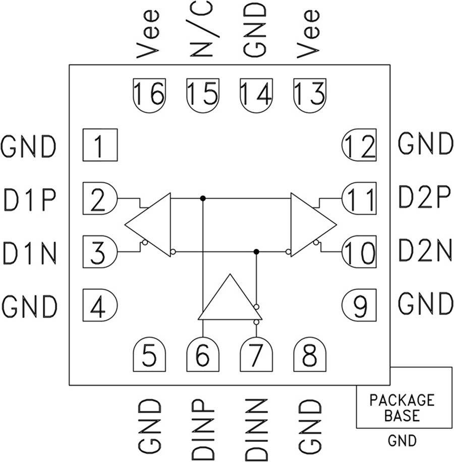 HMC724的所有差分输入均为CML并通过50 Ω电阻片上端接至正电源(GND),并支持直流或交流耦合。 差分CMI输出源端接至50 Ω,同样可以交流或直流耦合。 输出可直接连到50 Ω接地端接系统,也可通过CML逻辑输入驱动器件。 HMC724采用-3.3 V单电源供电,提供符合RoHS标准的3x3 mm SMT封装。
