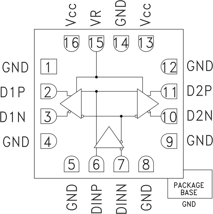 HMC744LC3的所有差分输入均为CML并通过50 Ω电阻片上端接至正电源(Vcc),并支持交流或直流耦合。 差分CML输出源端接至50 Ω,同样可以交流或直流耦合。 输出可直接连到50 Ω Vcc端接系统,而如果采用50 Ω端接至地,则可以使用隔直电容。 HMC744LC3还提供输出电平控制引脚VR,可用于损耗补偿,也可用于信号电平优化。HMC744LC3采用3.3 V单电源供电,提供符合ROHS标准的3x3 mm SMT封装。