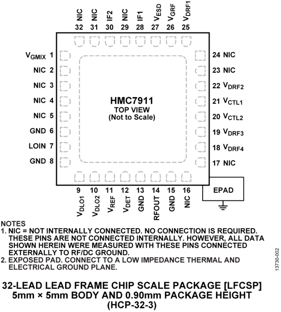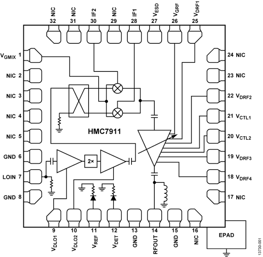 RFOUT上2倍本振(LO)泄漏:10 dBm(典型值)