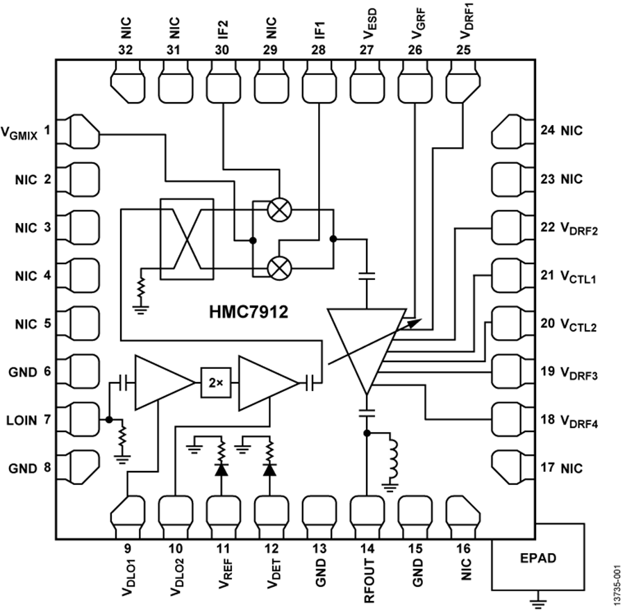 RFOUT上2倍本振(LO)泄漏:5 dBm(典型值)