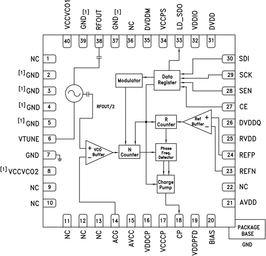 有关工作原理和寄存器映射信息,请参阅“集成VCO的PLL – 微波VCO”操作指南。