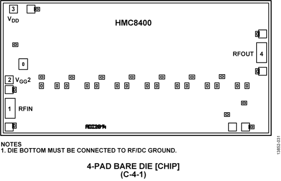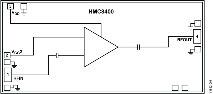 HMC8400是一款砷化镓(GaAs)、假晶高电子迁移率晶体管(pHEMT)、单芯片微波集成电路(MMIC)。 HMC8400是一款宽带低噪声放大器,工作频率范围为2 GHz至30 GHz. 该放大器提供13.5 dB增益、2 dB噪声系数、26.5 dBm输出IP3和14.5 dBm输出功率(1 dB增益压缩),功耗为67 mA(采用5 V电源时)。 HMC8400仅采用单正电源供电时具有自偏置以实现67 mA的漏极电流IDD。 HMC8400还具有增益控制选项VGG2。 HMC8400放大器输入/输出内部匹配50 Ω,可方便地集成到多芯片模块(MCM)中。 所有数据均由通过最短0.31 mm (12 mils)的两条0.025 mm (1 mil)线焊连接的芯片获取。