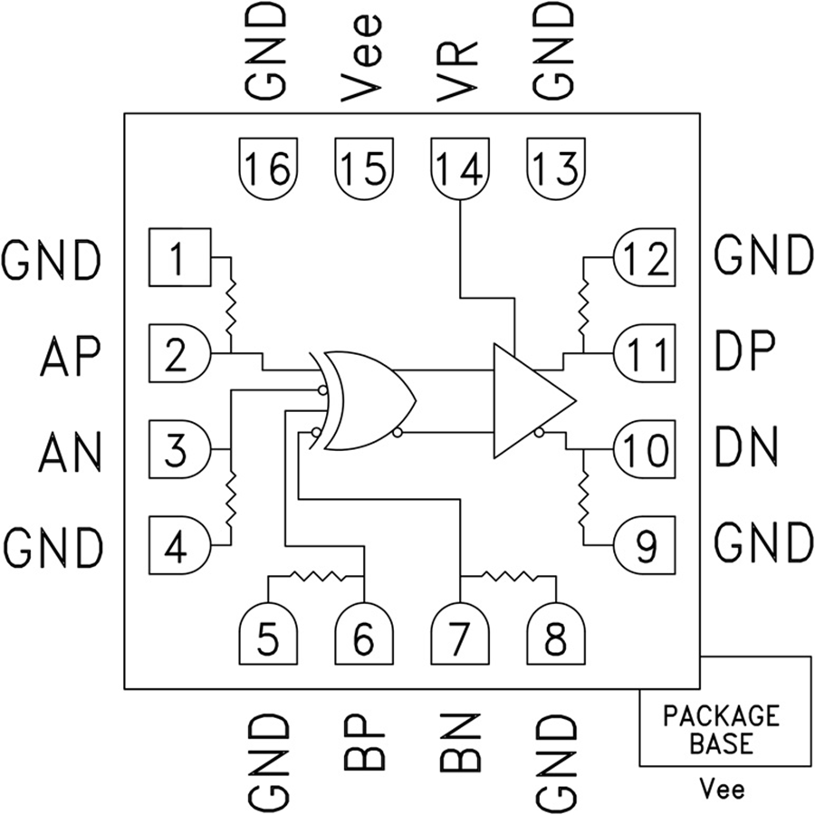 HMC851LC3C的所有输入信号均以50 Ω端接至片上接地,可采用交流或直流耦合。 HMC851LC3C的差分输出可交流或直流耦合。 输出可以直接连接到50 Ω接地端接系统,如果采用50 Ω端接至非接地直流电压,则可以使用隔直电容。 HMC851LC3C采用-3.3V DC单电源供电,提供符合RoHS标准的3x3 mm SMT陶瓷封装。