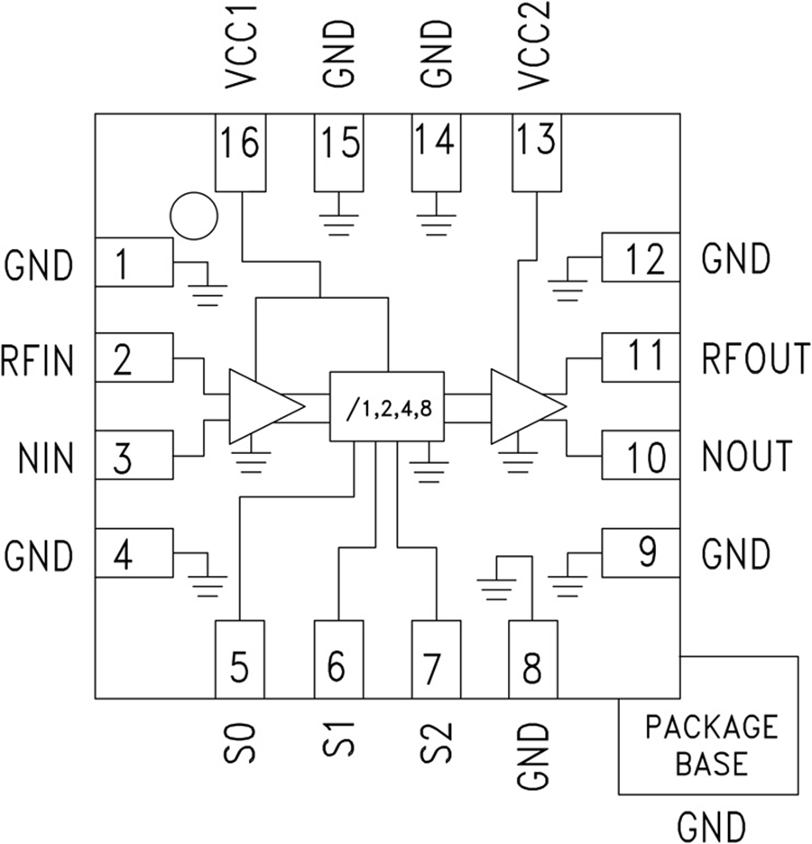 0.1 - 15 GHz低噪声可编程分频器(N = 1、2、4、8),采用SMT封装