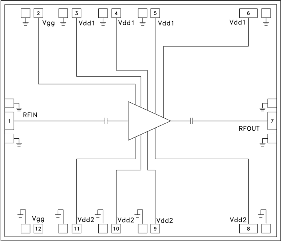 HMC906ACHIPS 是一款四级 GaAs pHEMT MMIC 2 瓦功率放大器,工作频段介于 27.3 和 33.5 GHz 之间。HMC906A 采用 +6V 电源,可以提供 28 dB 的增益以及 +33.5 dBm 的饱和输出功率和 20% PAE。RF I/O 是直流阻断型,并且匹配至 50 欧姆,以便方便地集成至多芯片组 (MCM)。所有数据均由两根长度为 0.31mm (12 mil)、直径为 0.025 mm (1 mil) 的键合线连接的芯片(位于 50 欧姆测试固件内)进行采集。