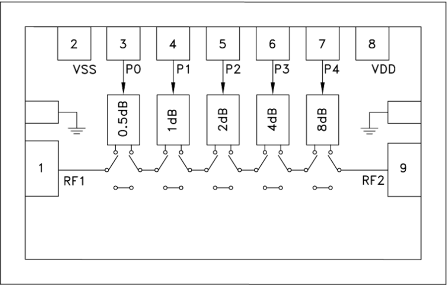 0.5 dB LSB GaAs MMIC 5位数字衰减器,0.1 - 30 GHz