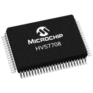 The HV57708 is a low voltage serial to high voltage parallel converter with push-pull outputs. The device has been designed for use as a driver for EL displays. It can also be used in any application requiring multiple output high voltage current sourcing and sinking capability such as driving plasma panels, vacuum fluorescent displays, or large matrix LCD displays.The device has 4 parallel 16-bit registers, permitting data rates 4x the speed of one (they are clocked together). There are also 64 latches and control logic to perform the polarity select and blanking of the outputs. HVOUT1 is connected to the first stage of the first shift register through the polarity and blanking logic. Data is shifted through the shift registers on the logic low to high transition of the clock. The DIR pin causes CCW shifting when connected to GND, and CW shifting when connected to VDD. A data output buffer is provided for cascading devices. This output reflects the current status of the last bit of the shift register (HVOUT64). Operation of the shift register is not affected by the LE (latch enable), BL(blanking), or the POL (polarity) inputs. Transfer of data from the shift registers to the latches occurs when the LE input is high. The data in the latches is stored when the LE is low.
