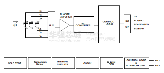 iis2dh具有用户可选的全尺度的±2g/±4G /±8g /±16G和能够测量加速度的输出数据速率从1赫兹到5.3千赫。