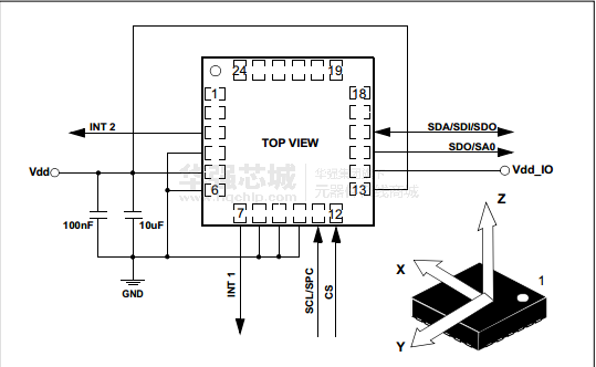 iis328dq是一个超低功耗高性能的三轴线性加速度计的数字串行接口、SPI或I2C兼容。建议需要一个扩展的温度范围和使用寿命长的工业应用,该设备的功能超低功率操作模式,让先进的节能和智能休眠唤醒功能。iis328dq动态用户可选的全尺度的±2g/±4G /±8G可测量加速度的输出数据率从0.5赫兹到1千赫。自检功能允许用户检查传感器在最终应用程序的功能。该装置可用于产生惯性唤醒事件信号中断,或设备本身的位置。中断发生器是可编程的终端用户的飞行。在一个小的,方形,扁平无引线封装(qfpn)用4x4毫米的足迹,iis328dq对应对应用小型化的趋势,并保证工作在温度范围从- 40°C + 105°C.