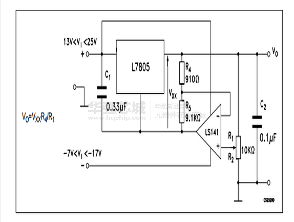 输出电压温度系数-1.1mV/°C;(注:L7805CV与7805相通)