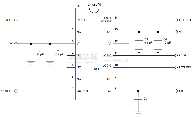 Logic inputs on the LF198-N are fully differential with low input current, allowing for direct connection to TTL, PMOS, and CMOS. Differential threshold is