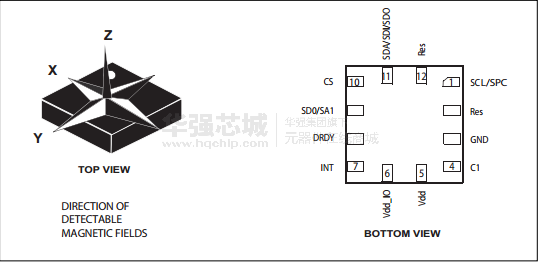 lis3mdl包括I2C串行总线接口,支持标准和快速模式(100 kHz和400 kHz)和SPI串行接口标准。