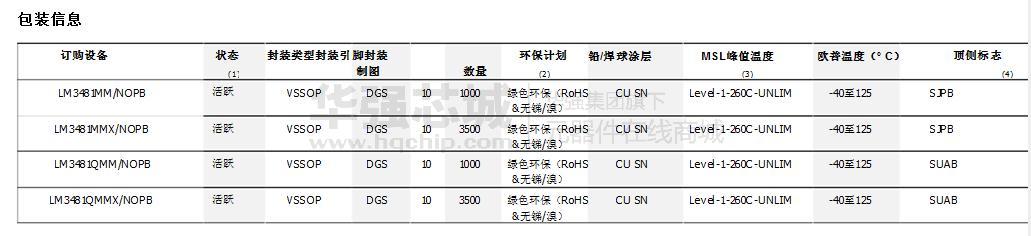 LM3481QMM在VSSOP -10封装的汽车级产品已通过AEC -Q1001级合格( -40 ° C至+ 125 ° C工作结温)