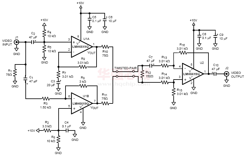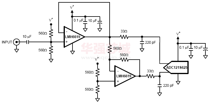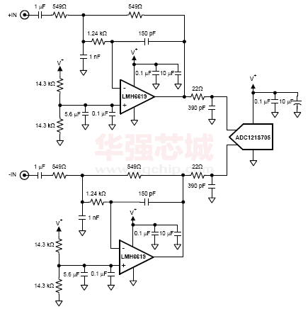 放大器的电压反馈设计拓扑提供平衡输入和高开环得到缓解的