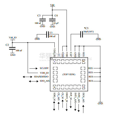 lsm9ds1包括I2C串行总线接口支持标准和快速模式(100 kHz和400 kHz)和一个SPI串行接口标准。