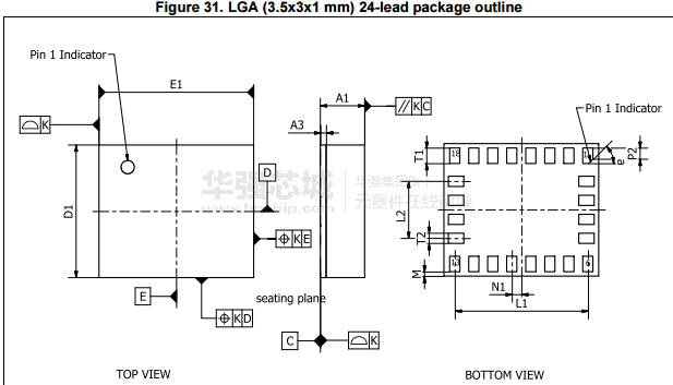 在一个塑料的lsm9ds1栅格阵列(LGA)封装,可它是保证工作在扩展的温度范围从- 40°C + 85°C.