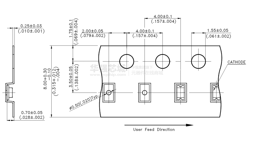 超薄(0.55H毫米)芯片LED。