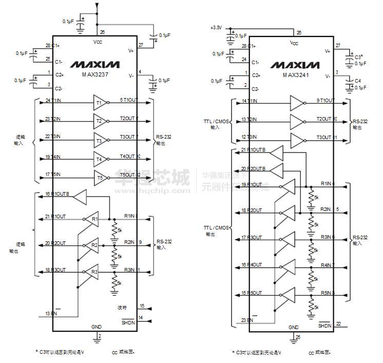 o1μA低功耗关断,接收器活跃(MAX3222/MAX3237/MAX3241)