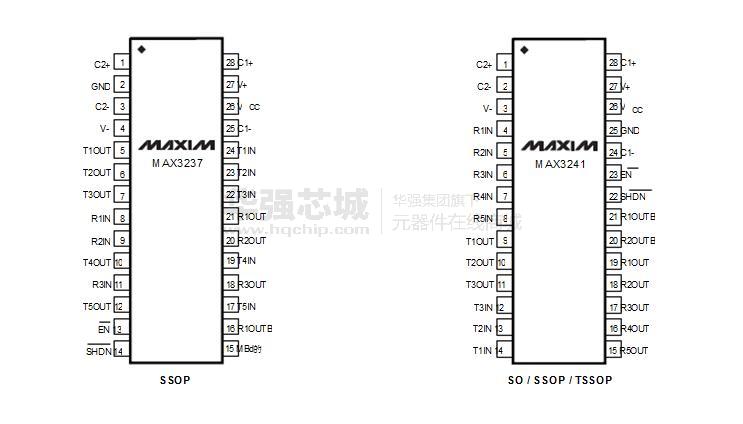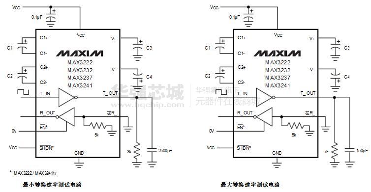 o保压摆率:6V / μs的( MAX3222 / MAX3232 / MAX3237 / MAX3241 )24V / μs的( MAX3237 -兆波特操作)