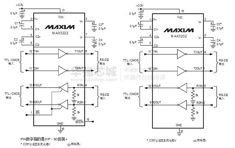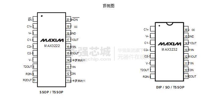 o引脚兼容于工业标准的MAX232(MAX3232)引脚兼容于工业标准的MAX242(MAX3222)