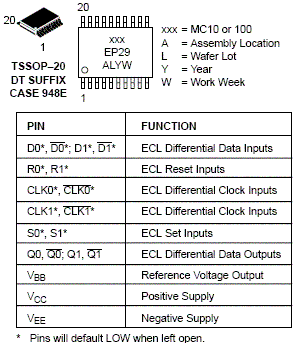 The MC10/100EP29 is a dual master-slave flip flop. The device features fully differential Data and Clock inputs as well as outputs. The MC10/100EP29 is functionally equivalent to the MC10/100EL29. Data enters the master latch when the clock is LOW and transfers to the slave upon a positive transition on the clock input.