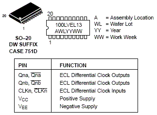 The MC100LVEL13 is a dual, fully differential 1:3 fanout buffer. The MC100EL13 is pin and functionally equivalent to the MC100LVEL13 but is specified for operation at the standard 100E ECL voltage supply. The Low Output-Output Skew of the device makes it ideal for distributing two different frequency synchronous signals.