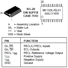 The MC100LVEL91 is a triple LVPECL input to ECL output translator. The device receives standard or low voltage differential PECL signals, determined by the VCC supply level, and translates them to differential -3.3 V to -5.0 V ECL output signals. (For translation from 5.0 V PECL to -5 V ECL output, see MC100EL91.)