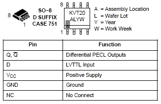 The MC100LVELT20 is a 3.3 V TTL/CMOS to differential PECL translator. Because PECL (Positive ECL) levels are used, only +3.3 V and ground are required. The small outline SOIC−8 package and the single gate of the MC100LVELT20 makes it ideal for those applications where space, performance, and low power are at a