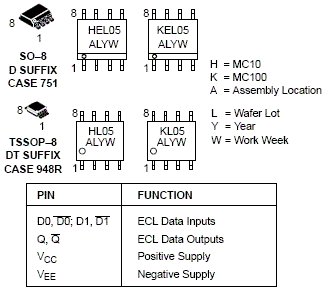 The MC10EL/100EL05 is a 2-input differential AND/NAND gate. The device is functionally equivalent to the E404 device with higher performance capabilities.With propagation delays and output transition times significantly faster than the E404 the EL05 is ideally suited for those applications which require the ultimate in AC performance.