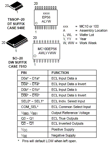 The MC10/100EP56 is a dual, fully differential 2:1 multiplexer. The differential data path makes the device ideal for multiplexing low skew clock or other skew sensitive signals. Multiple V