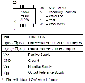 The MC10/100EP90 is a TRIPLE ECL TO LVPECL/PECL translator. The device receives differential LVECL or ECL signals and translates them to differential LVPECL or PECL output signals. A V