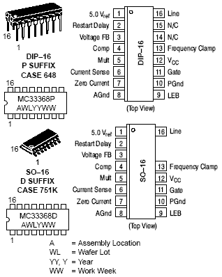 The MC33368 features a watchdog timer to initiate output switching, a one quadrant multiplier to force the line current to follow the instantaneous line voltage a zero current detector to ensure critical conduction operation, a transconductance error amplifier, a current sensing comparator, a 5.0 V reference, an undervoltage lockout (UVLO) circuit which monitors the V